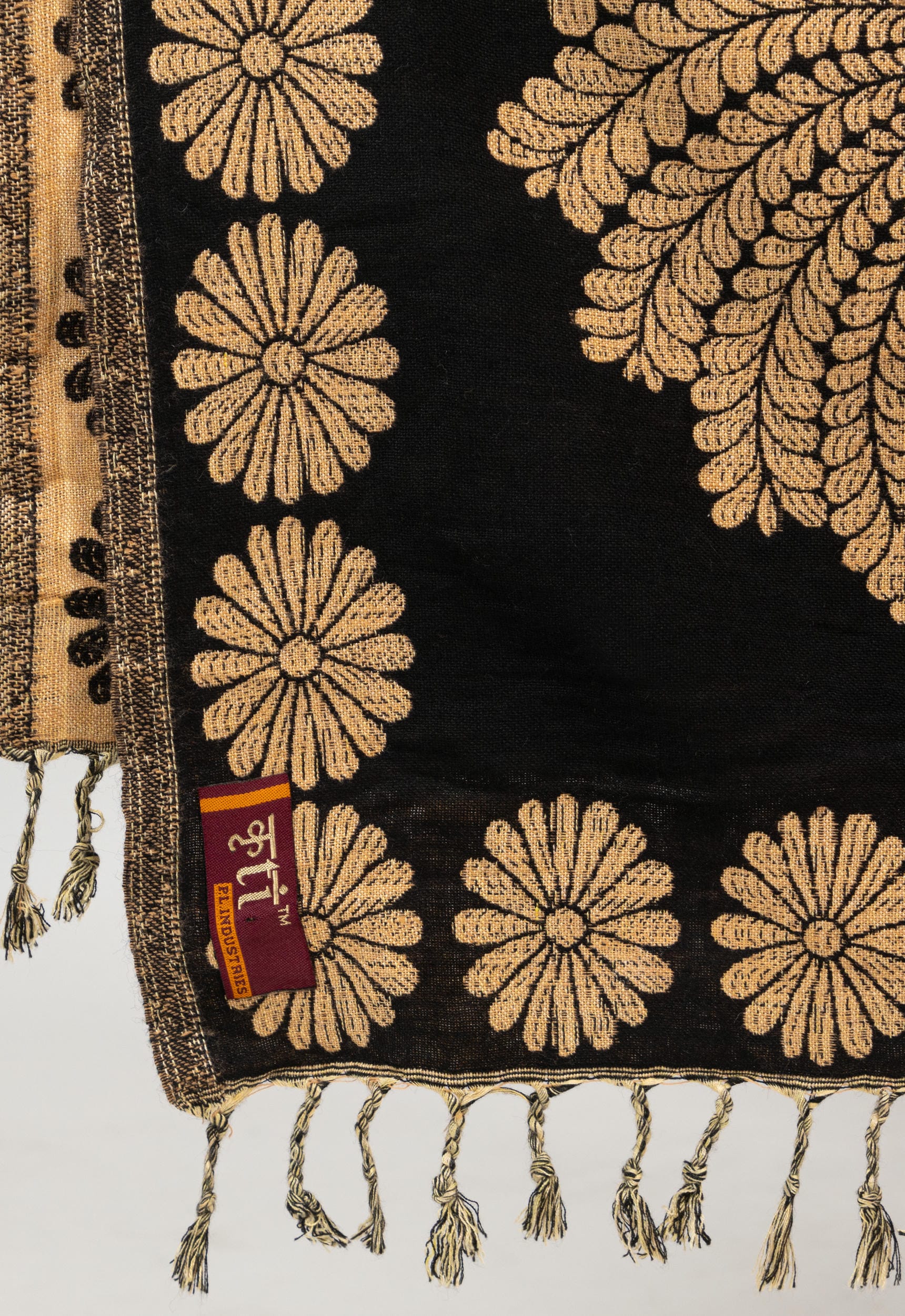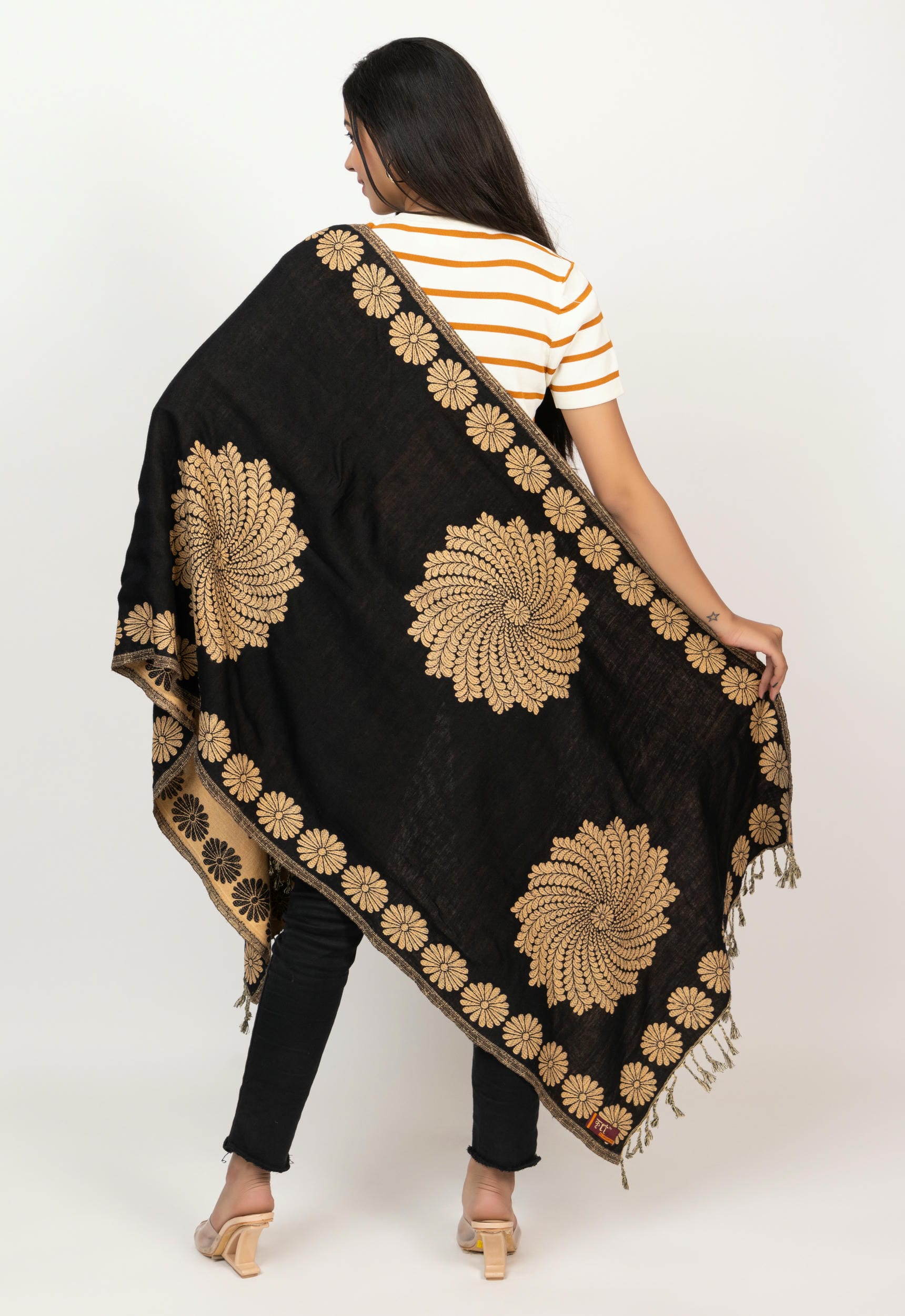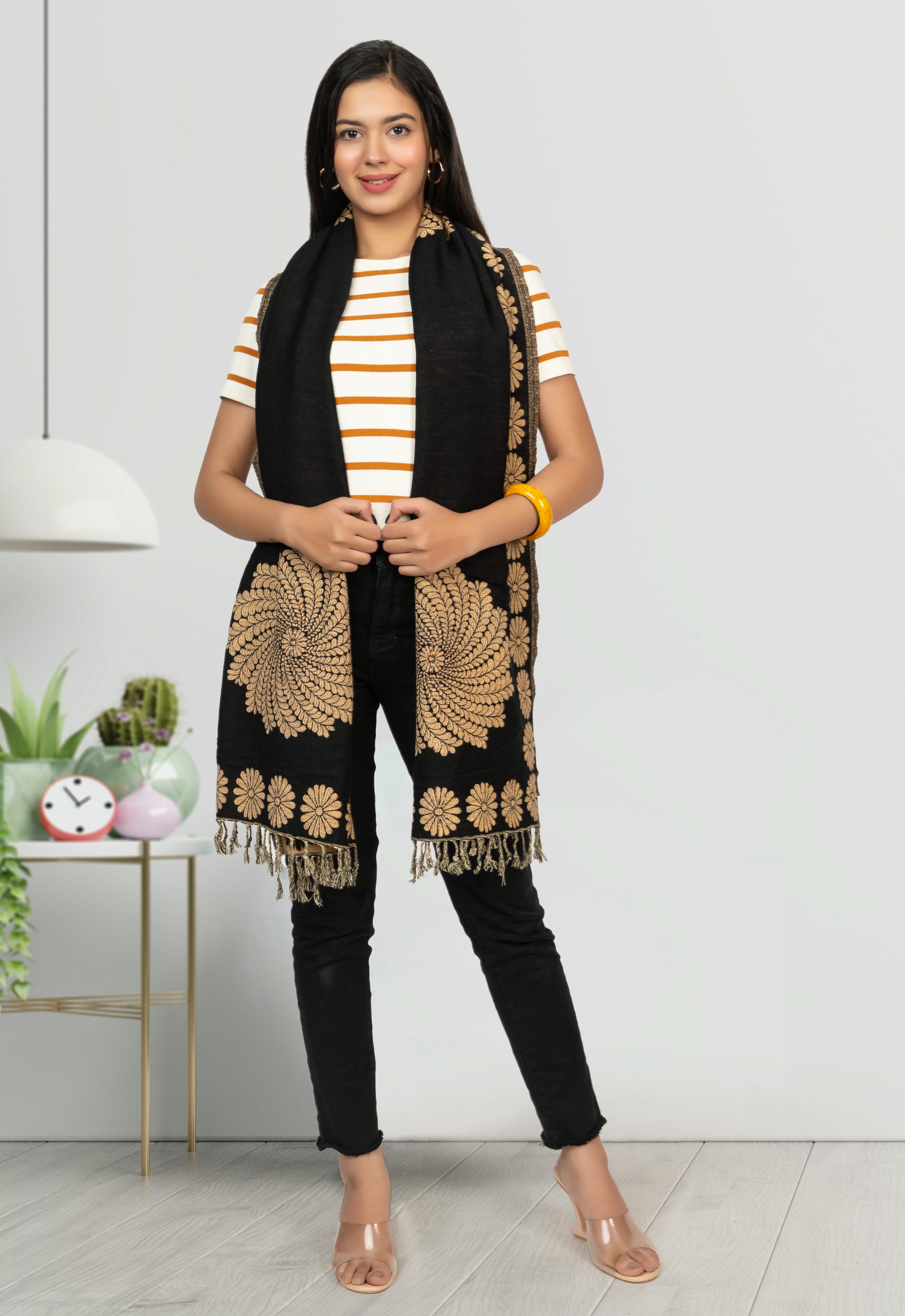 KRITI Floral Embroidery Woollen Black Color Stole For Girl