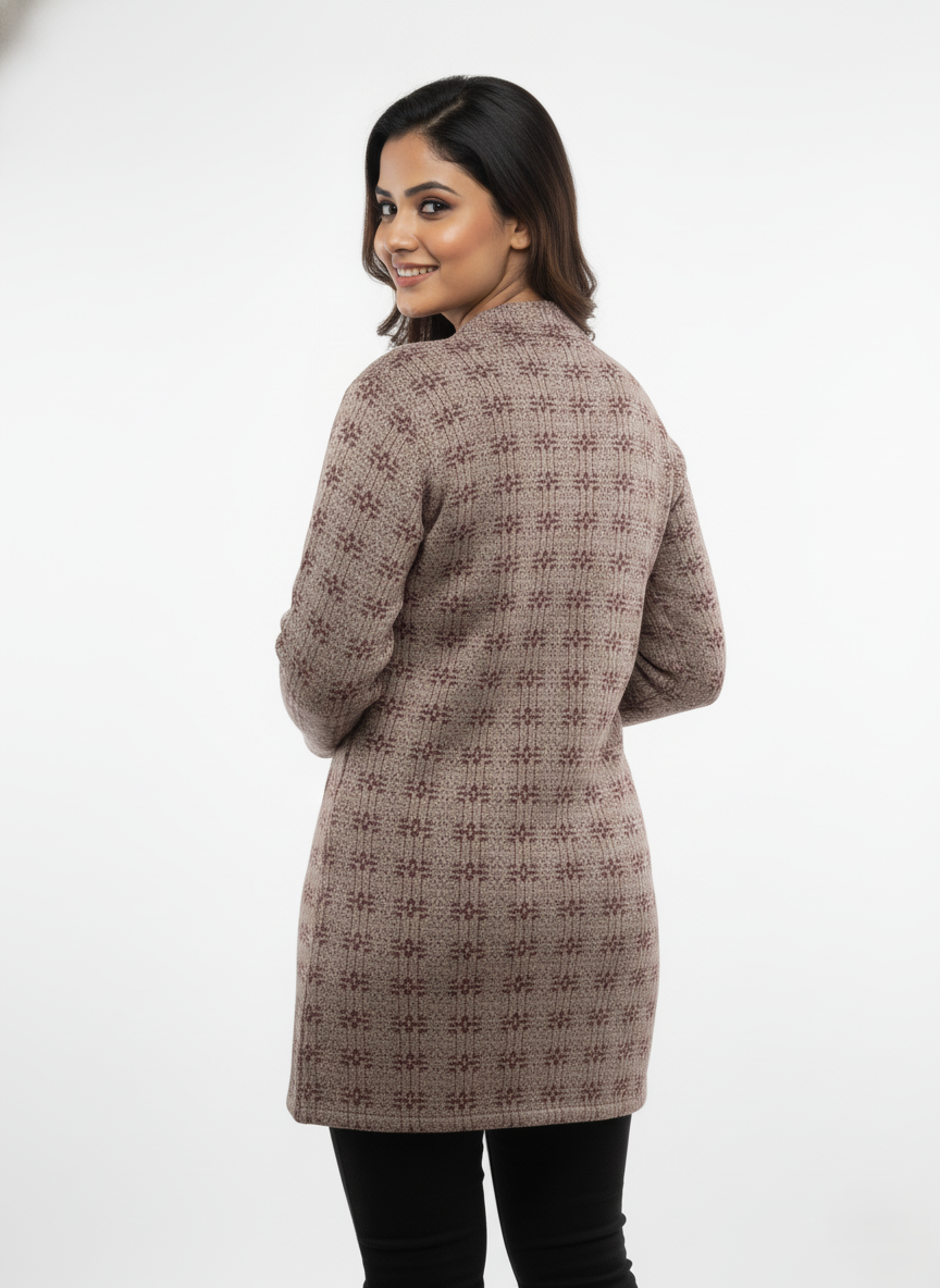 Stay cozy and stylish this winter with this elegant mauve wool-blend cardigan. Designed with a subtle textured pattern and a smart front-button closure, it offers both comfort and sophistication. The soft knit fabric ensures warmth without compromising on style, making it perfect for layering over casual or formal outfits.