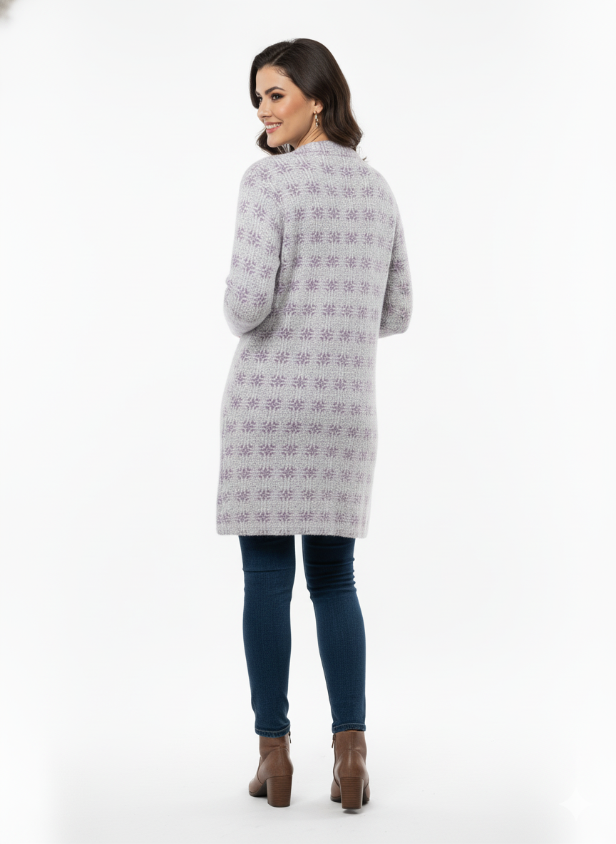 Add a touch of elegance to your winter wardrobe with this soft off white wool-blend cardigan. Designed with a delicate textured pattern and a flattering longline fit, it combines classic charm with cozy warmth. The front-button closure enhances its sophisticated look, making it perfect for both casual outings and office wear during chilly days.