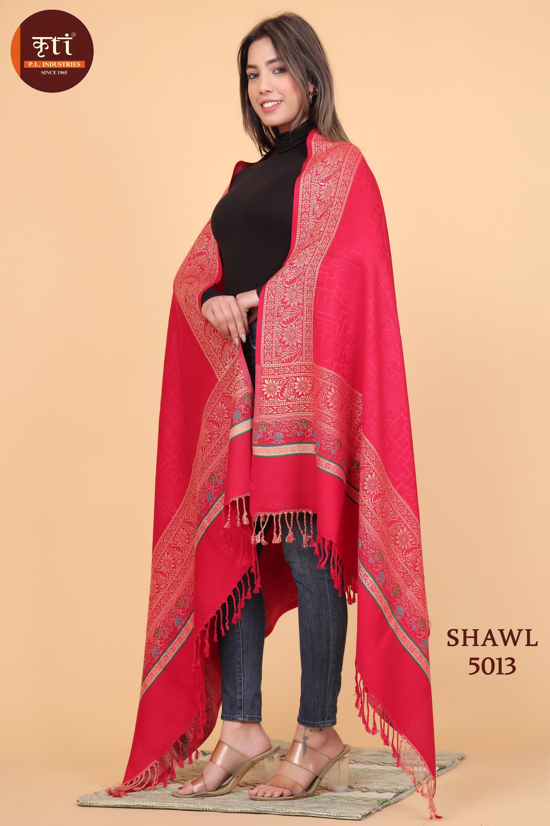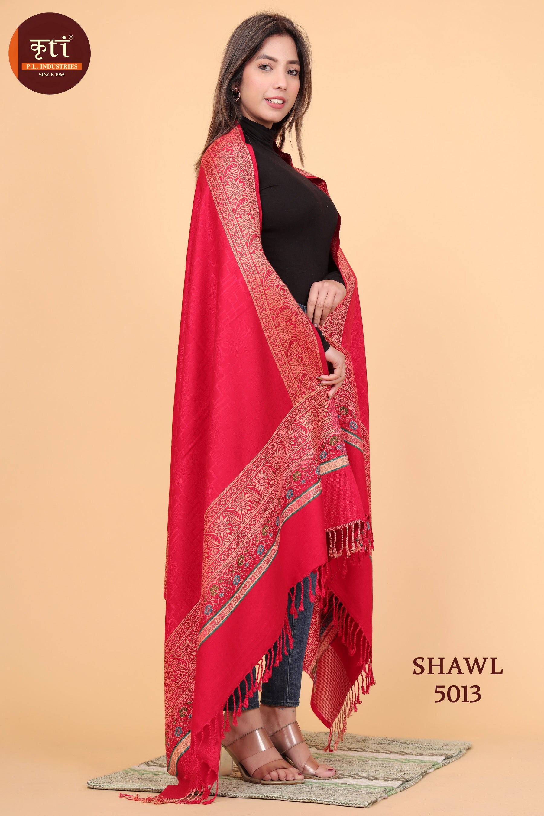 KRITI Kullu Patti Border Woollen Red Color Shawl For Women