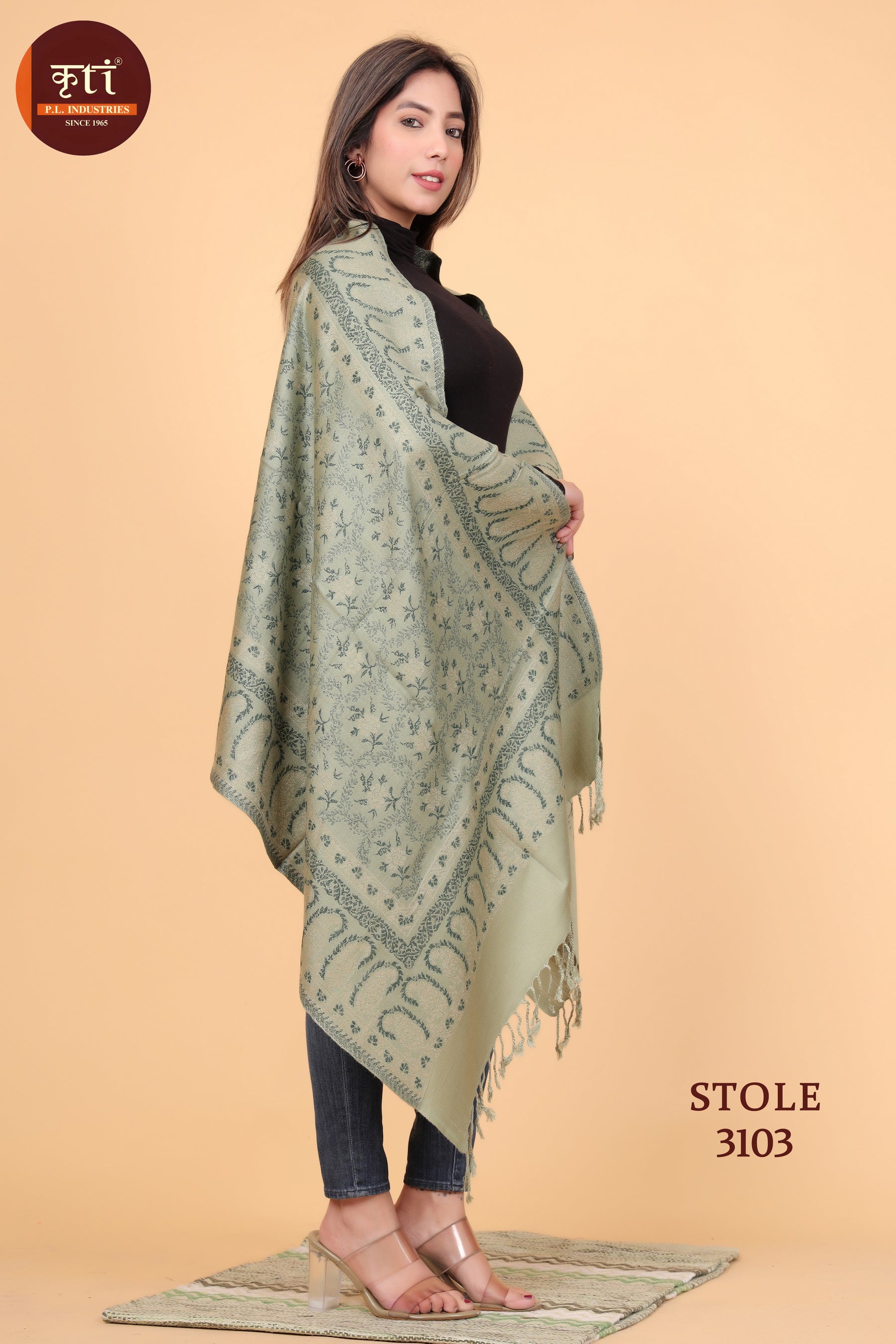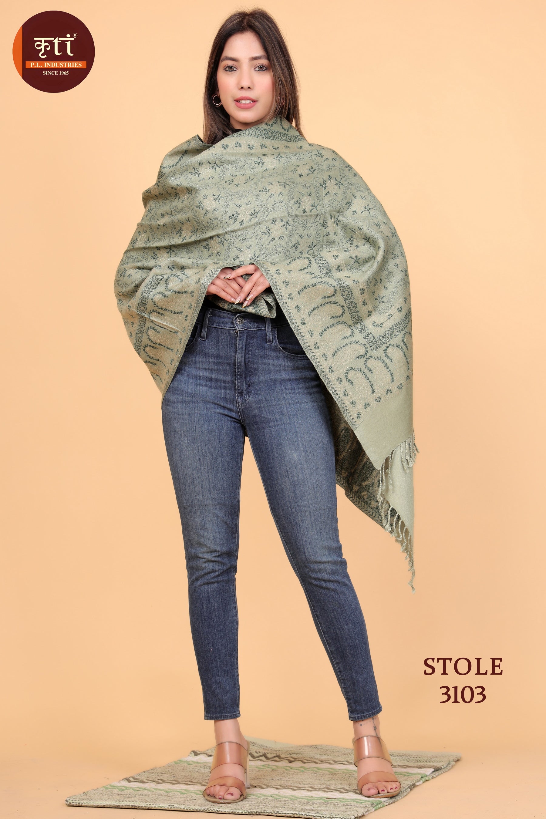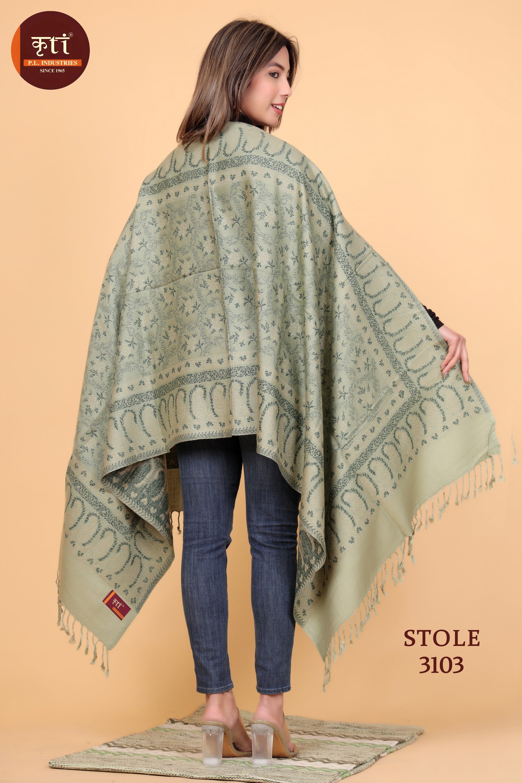 KRITI Paisley Design Woollen Green Color Stole For Girl