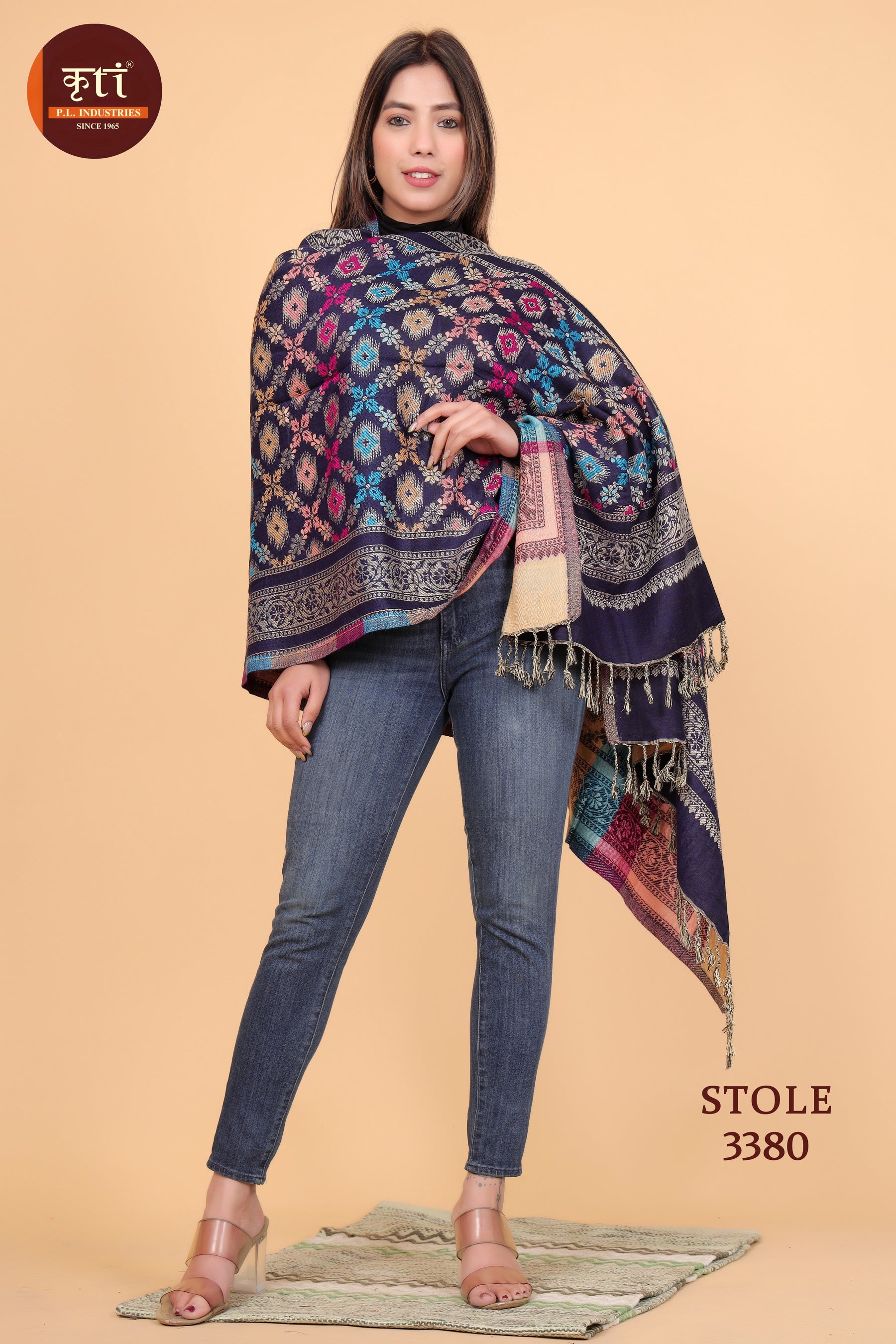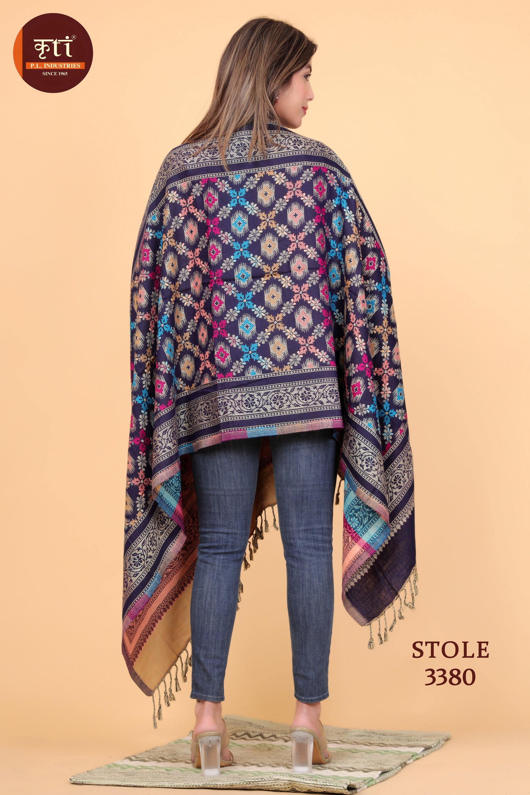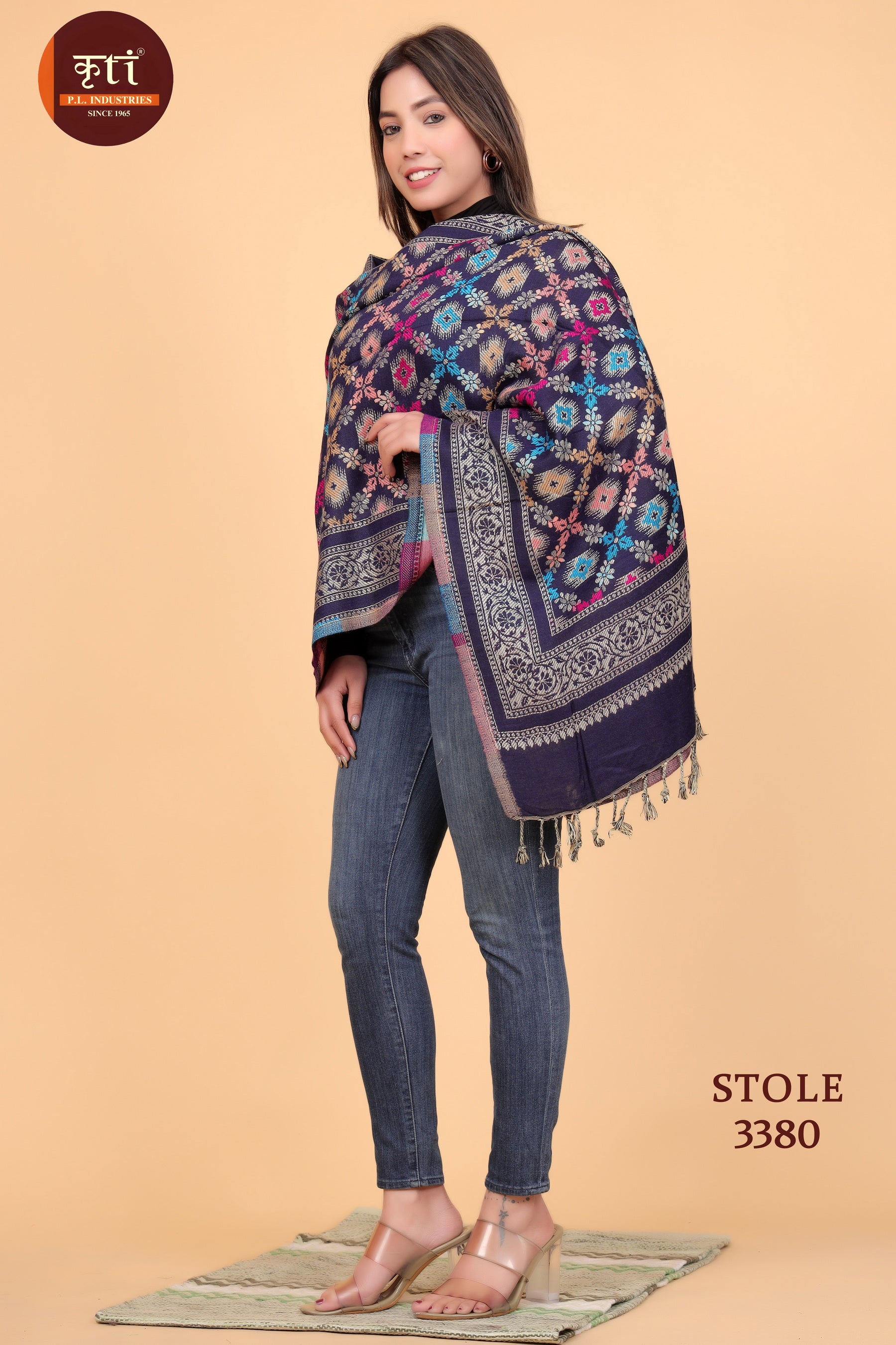 KRITI Floral Designer Woollen Navy color Stole For Girl