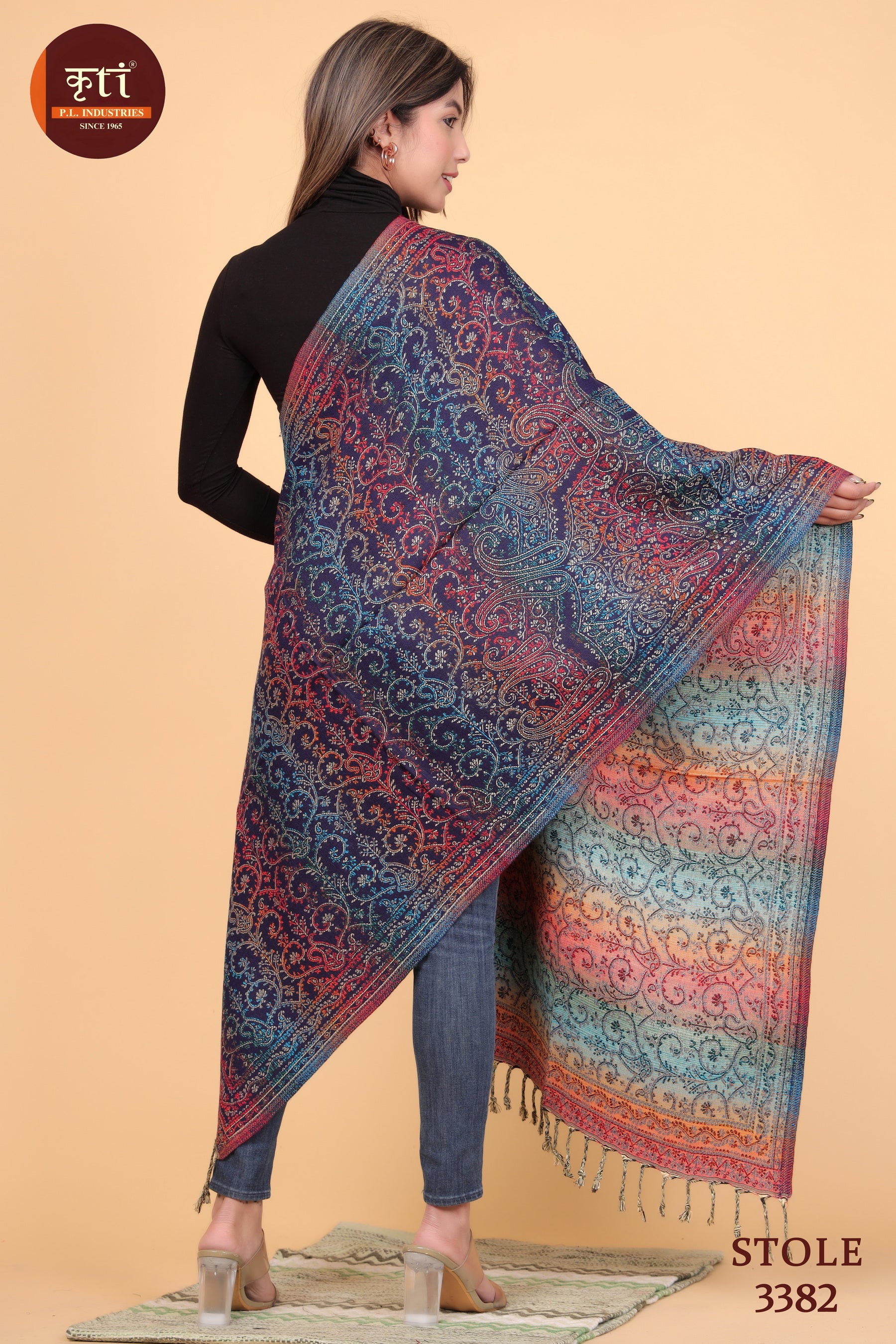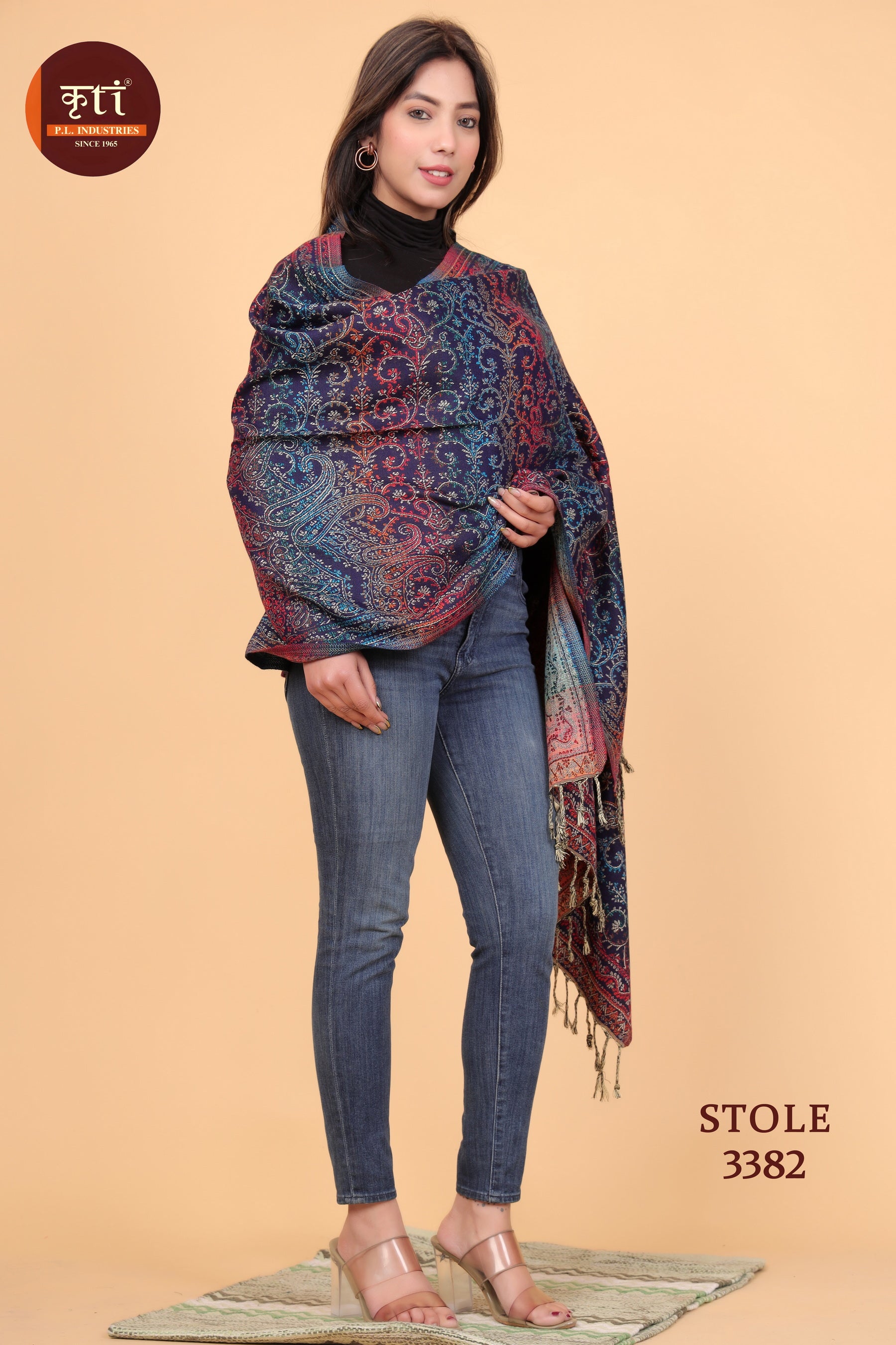 KRITI Paisley Design Woollen Navy color Stole For Girl