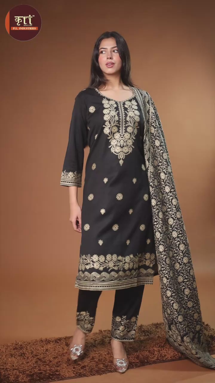 KRITI Woolen Unstitched Suit Set Weaving Design Black Color For Women