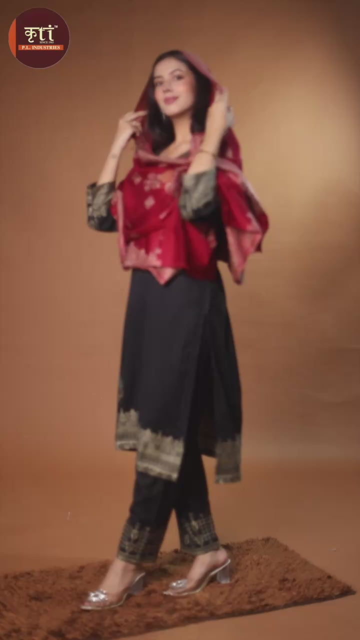 KRITI Woolen Unstitched Suit Set Weaving Design Black Color For Women