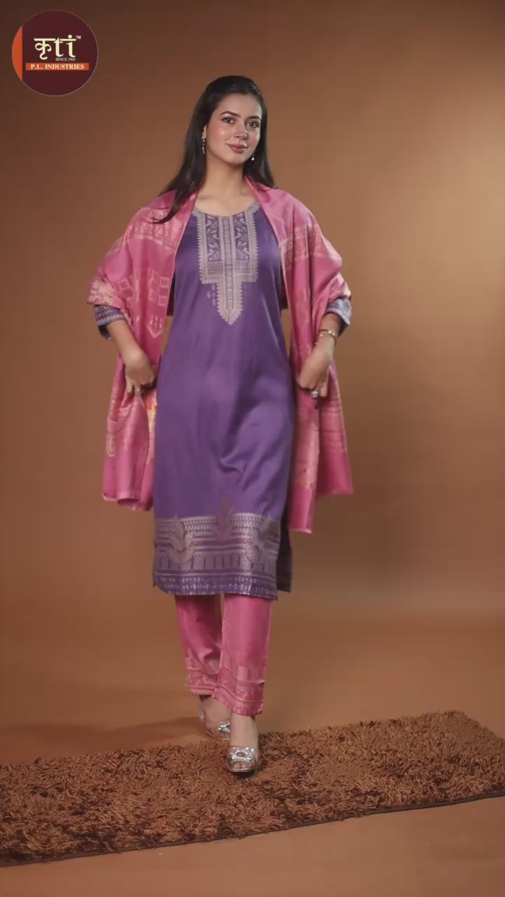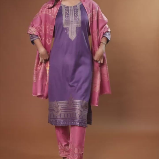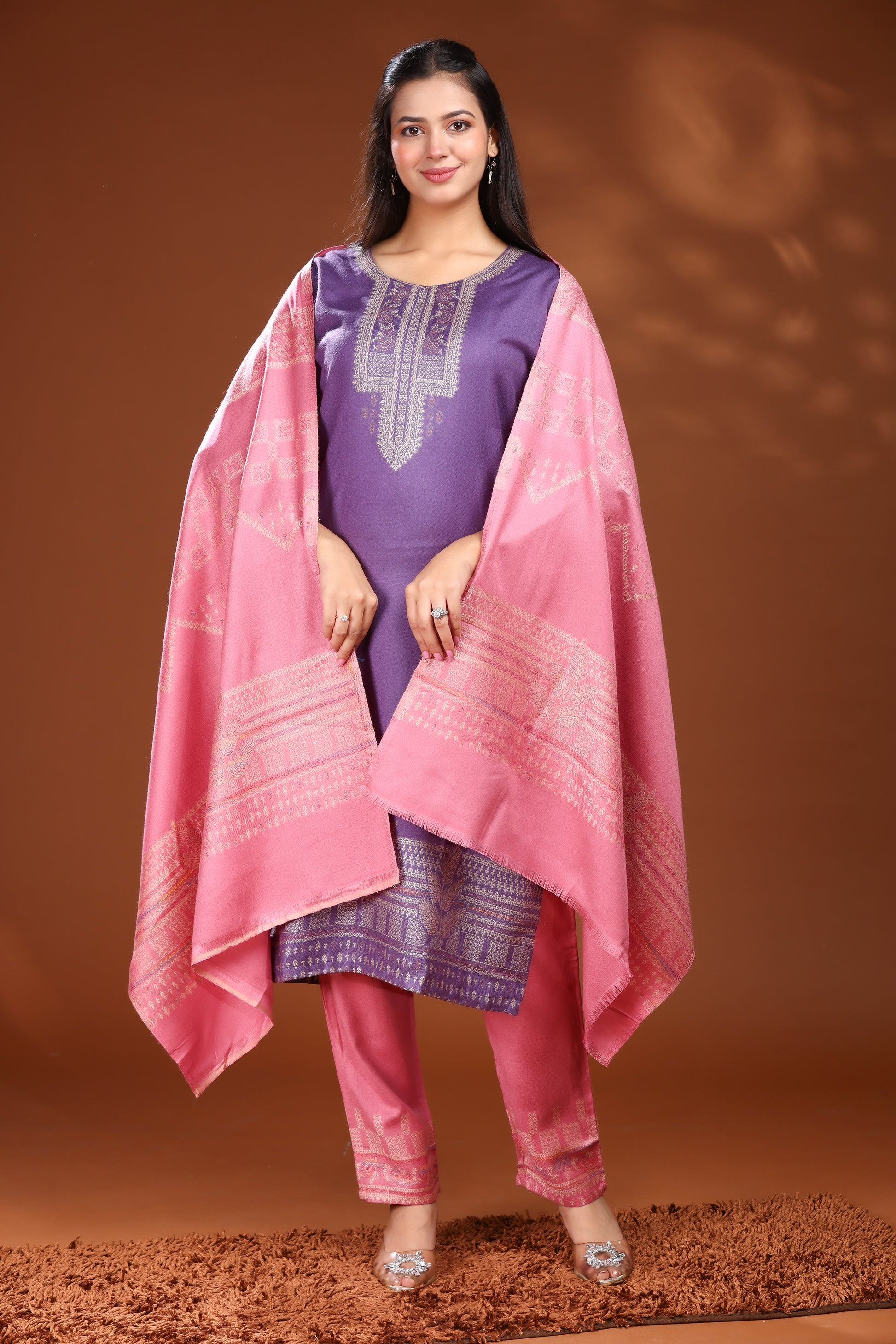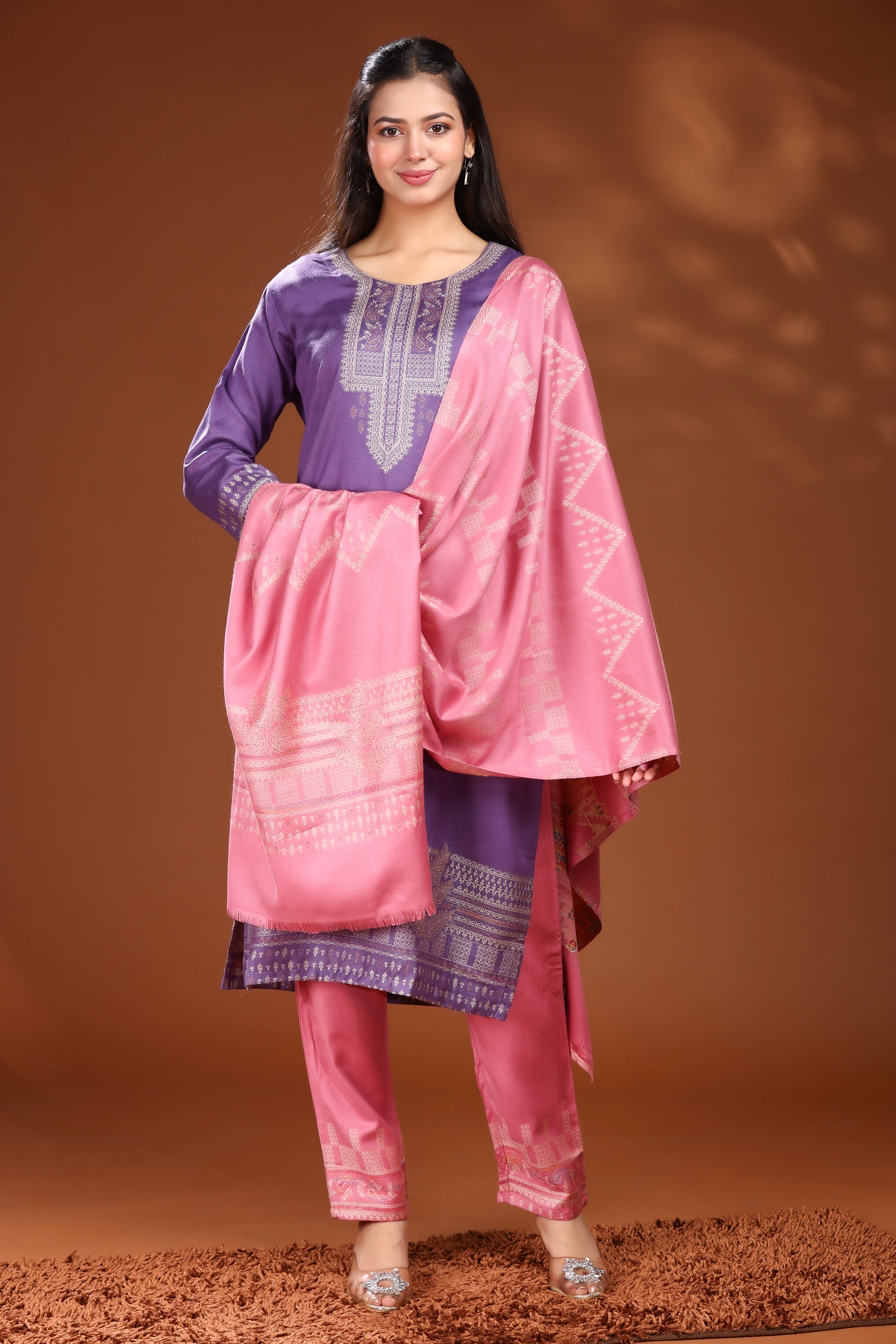 KRITI Woolen Unstitched Suit Set Weaving Design Purple Color For Women