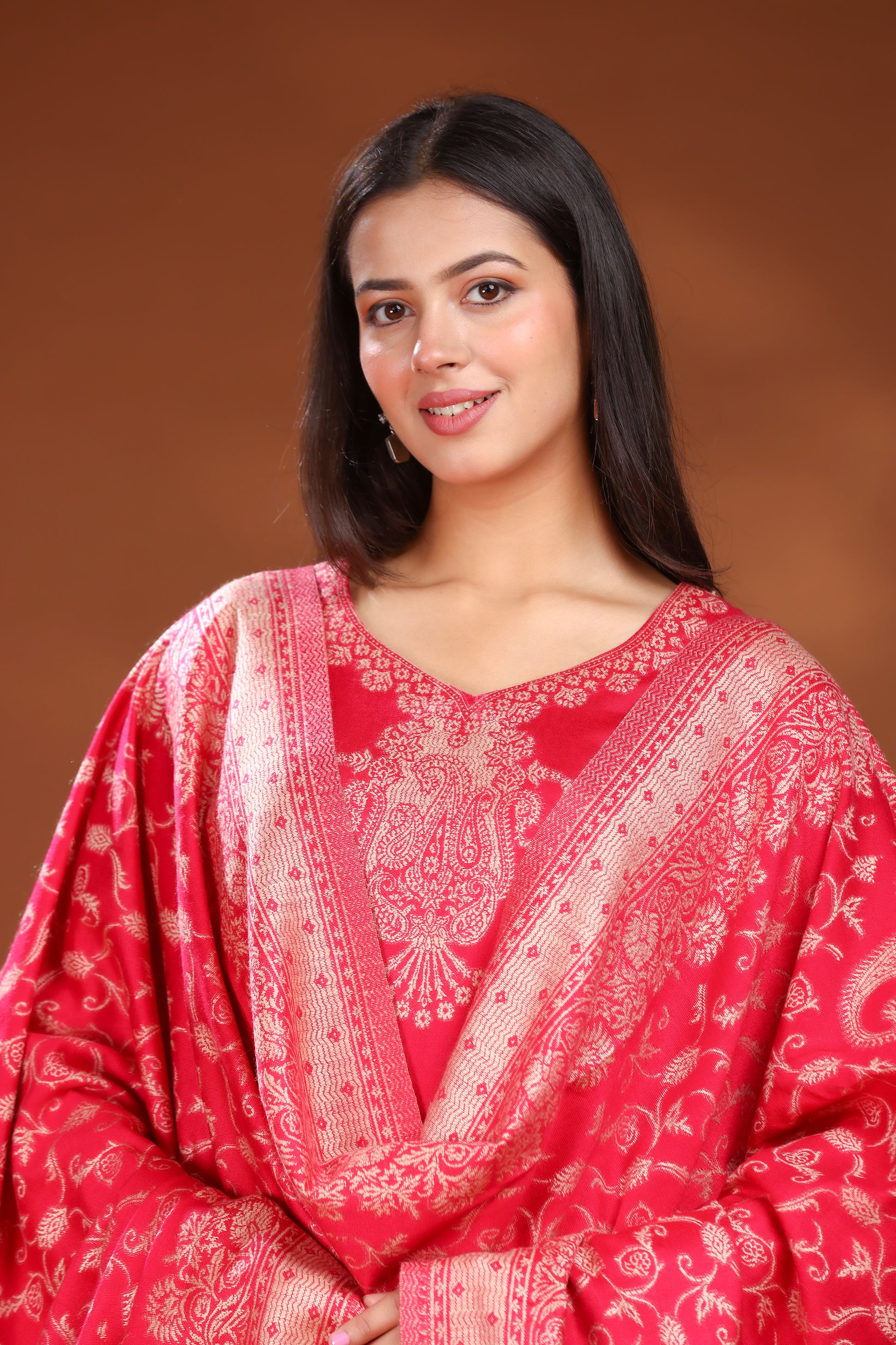 KRITI Woolen Unstitched Winter Suit Set Woven Pattern Pink Color For Women