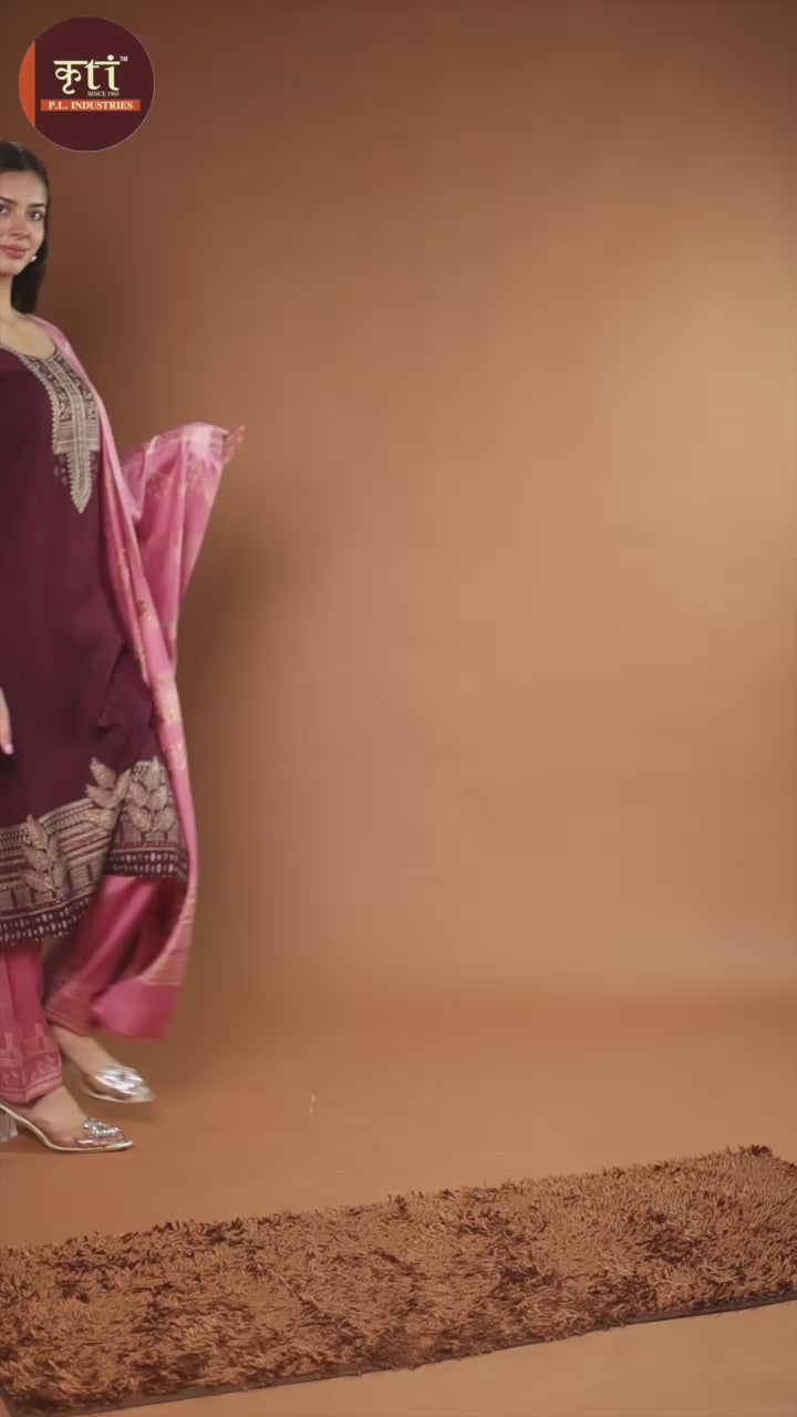 KRITI Woolen Unstitched Winter Suit with Gold Weave Maroon and Pink Color For Women