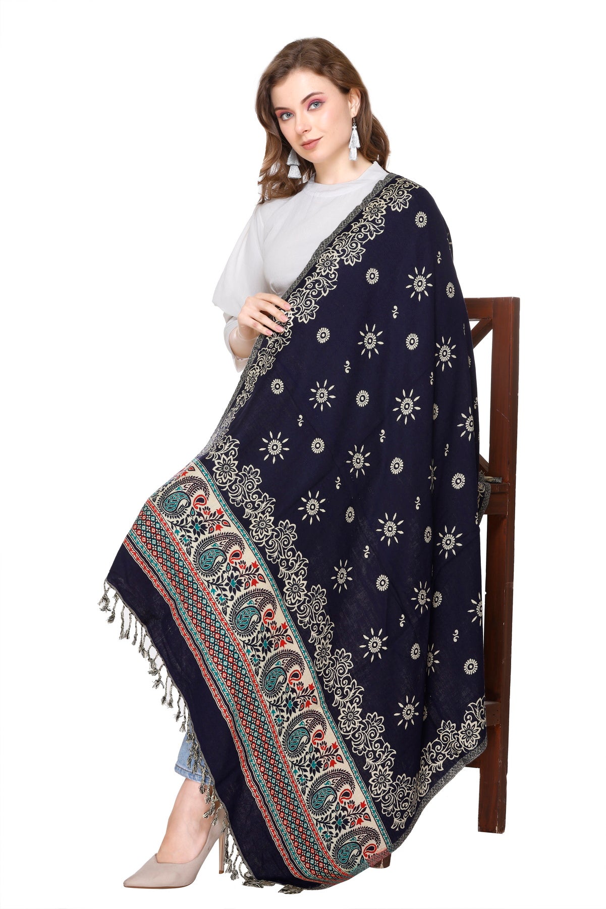 KRITI Floral Border Woollen Black Color Shawl For Women