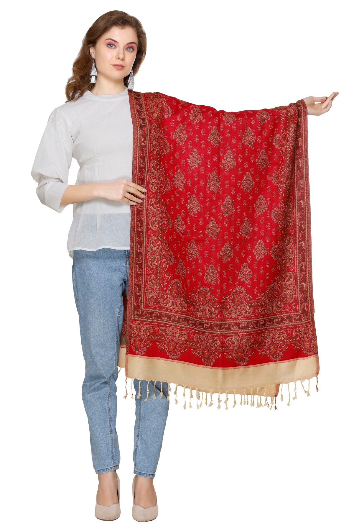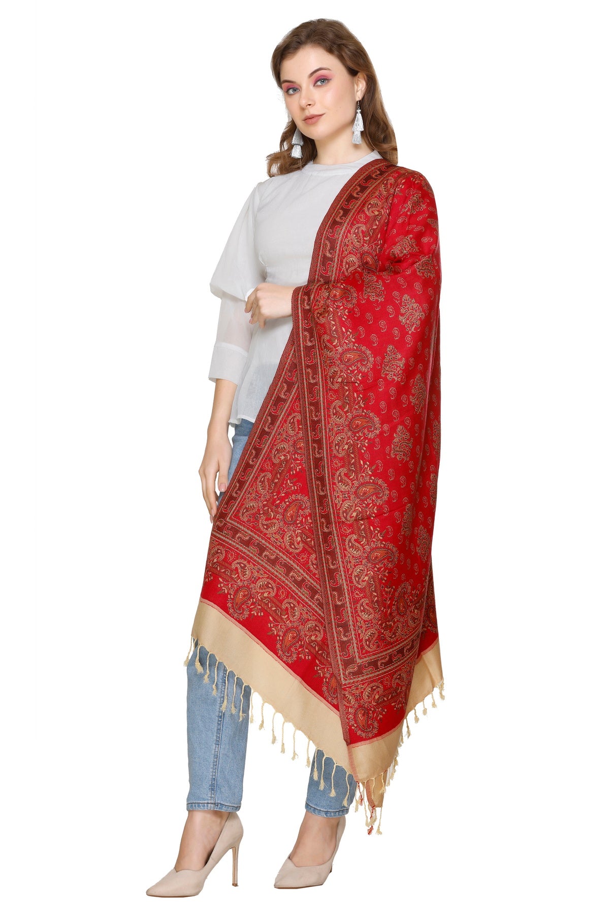KRITI Floral Designer Woollen Red Colour Stole For Girl