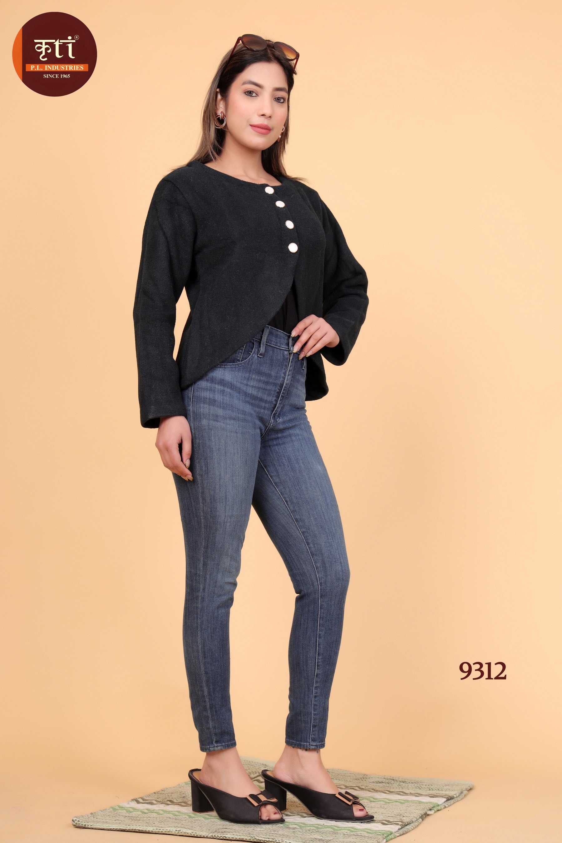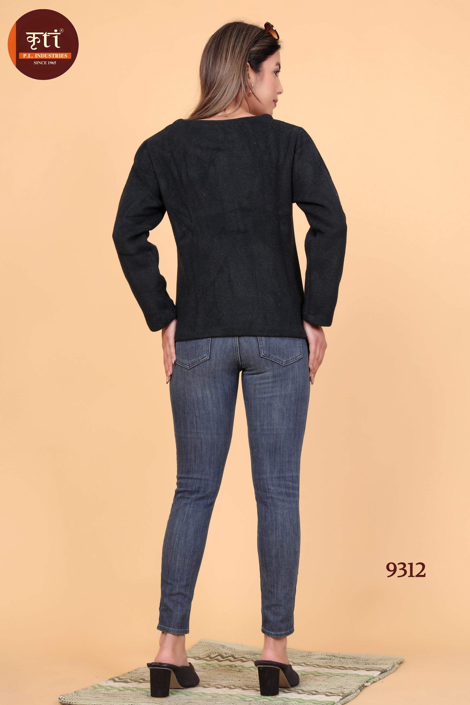 KRITI Winter Stylish Button Design Hair Top Black Color For Women