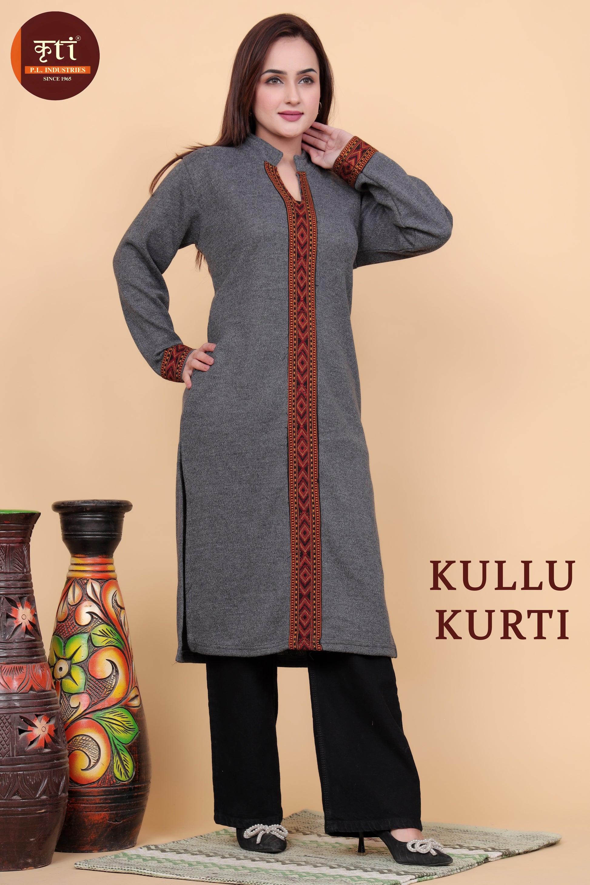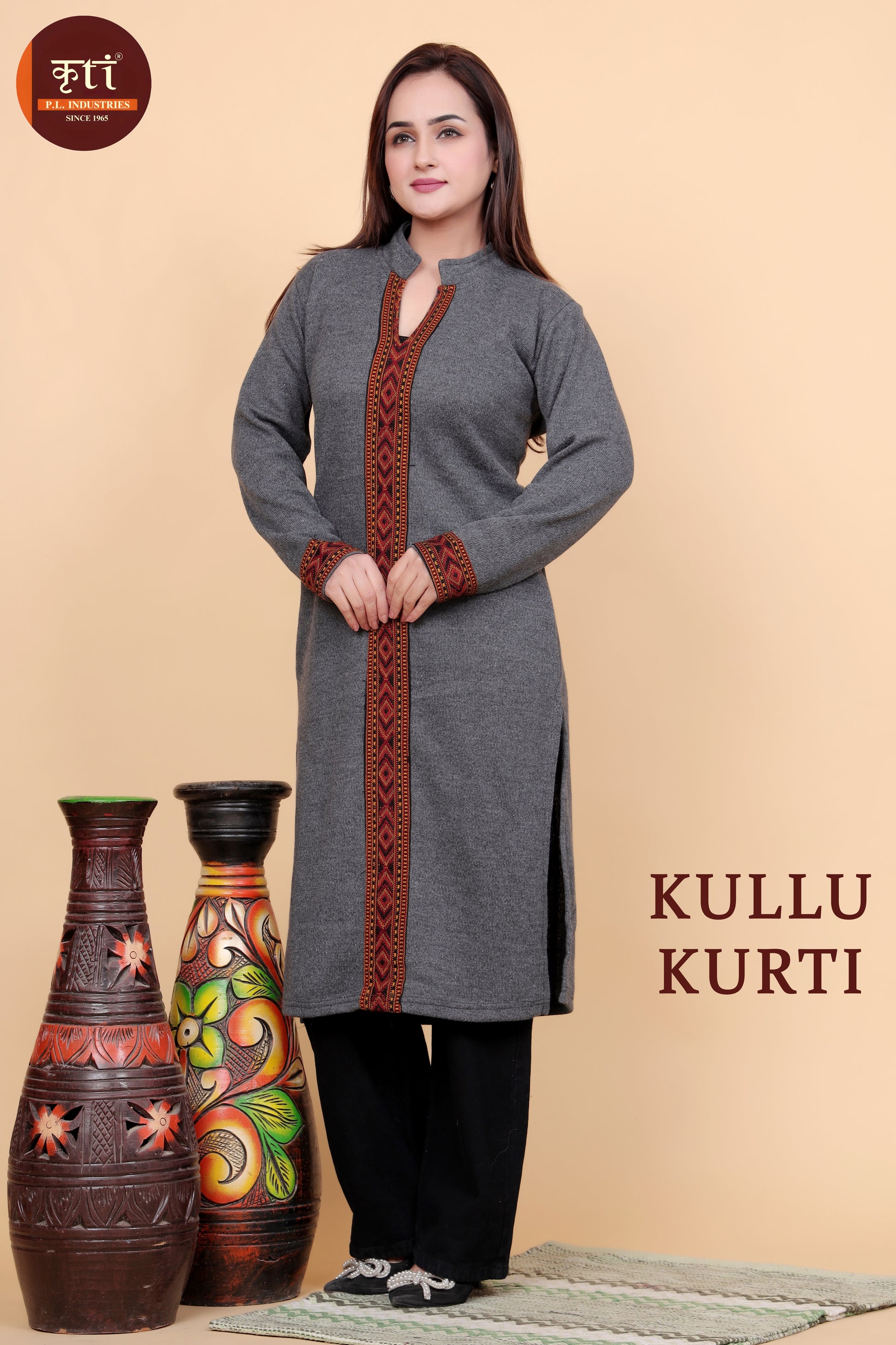 KRITI Winter Traditional Kullu Woollen Kurti Grey Color For Women