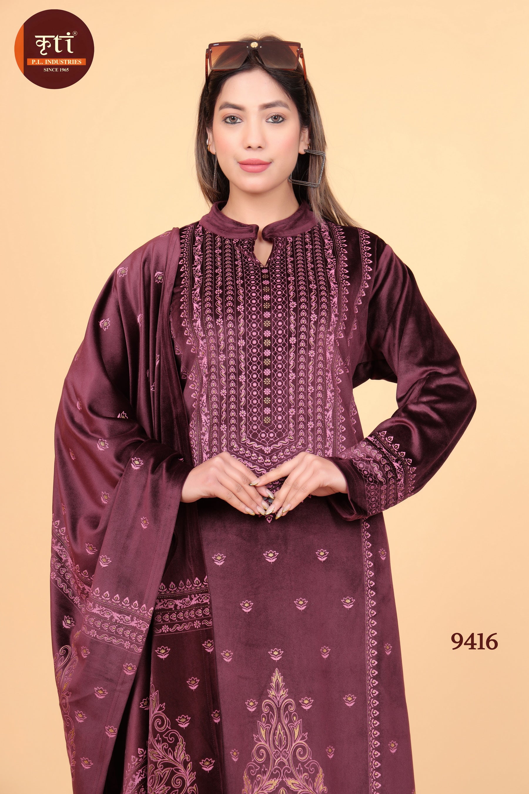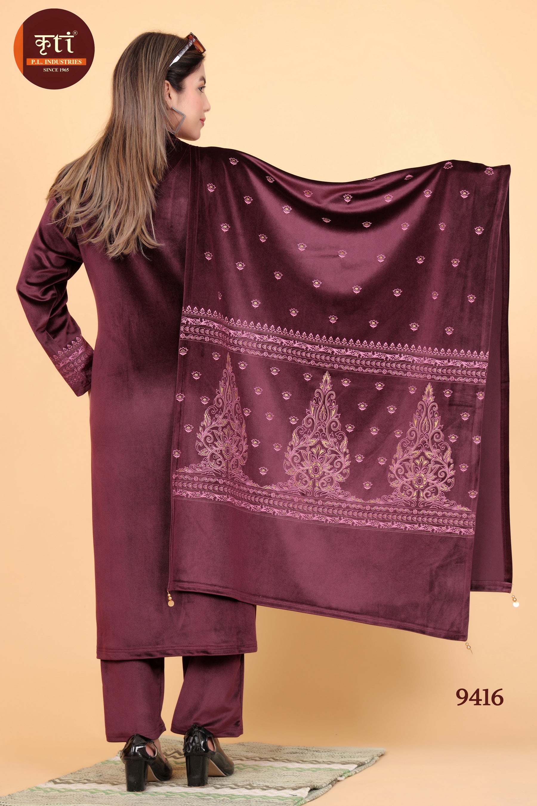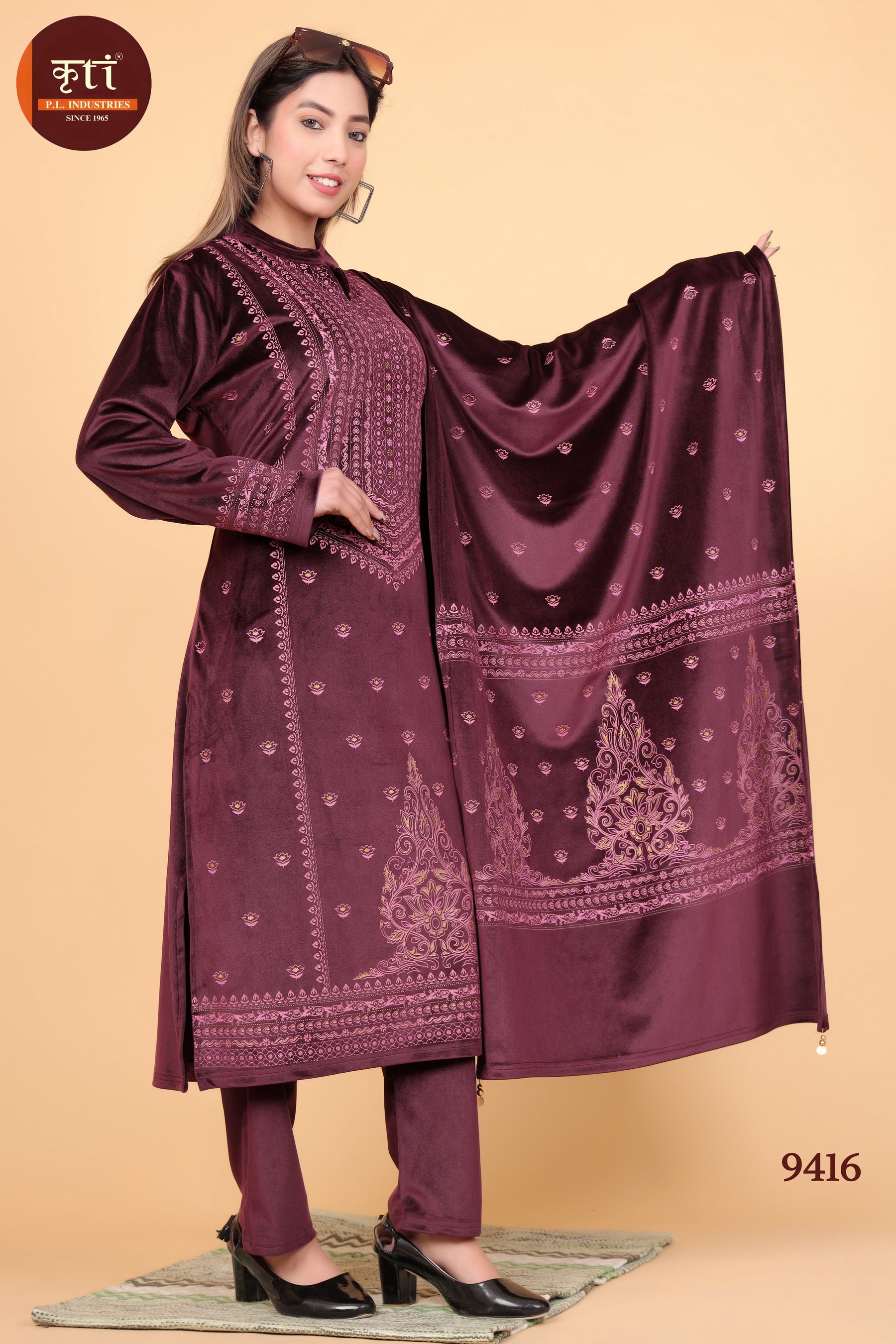 This stunning wine maroon velvet embroidered suit set is crafted to give you a royal and graceful look for winter occasions. With its detailed embroidery on kurta and dupatta, it reflects traditional artistry blended with modern elegance. Perfect for festive celebrations, wedding functions, and party wear.